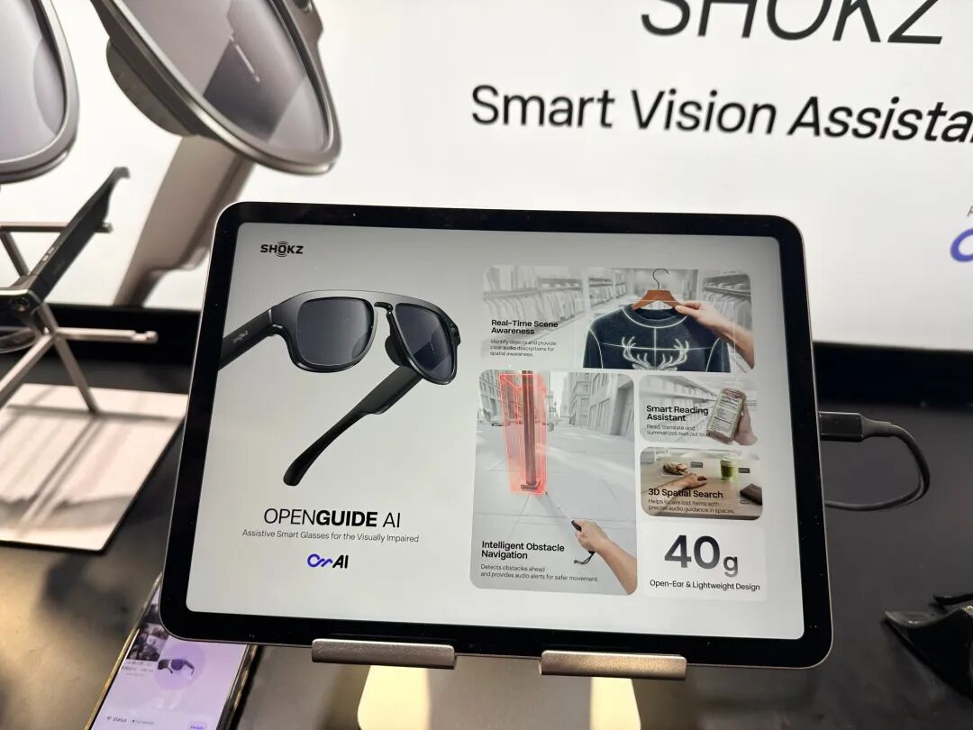 国内知名骨传导耳机品牌韶音展出了OpenFit Pro等最新开放式耳机,此外,展台还出现了两款智能眼镜。